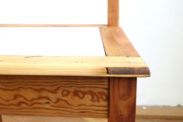 Ein kaputter Stuhl wird in handwerklicher Manier repariert. Manche Materialien gleichen sich mit der Zeit dem Bestand an, andere geben dem Stuhl einen neuen Charakter.